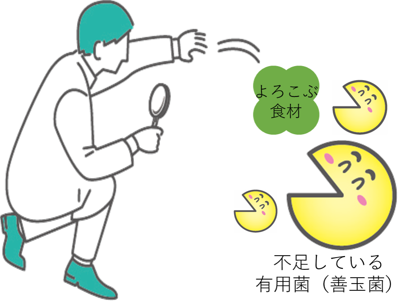 - 不足する有用菌(善玉菌)*がよろこぶ食材がわかる
